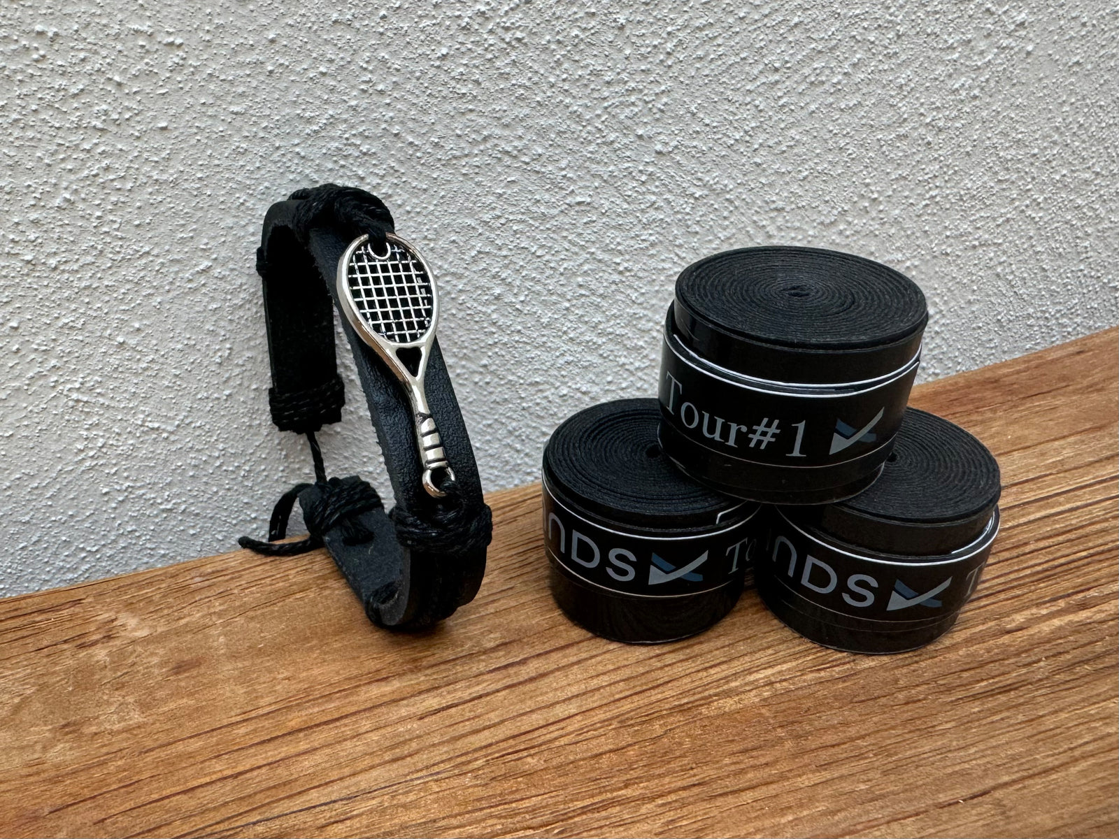 Leder-Armband Tennis + 3 Tour #1 overgrips weiß